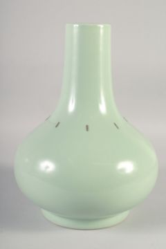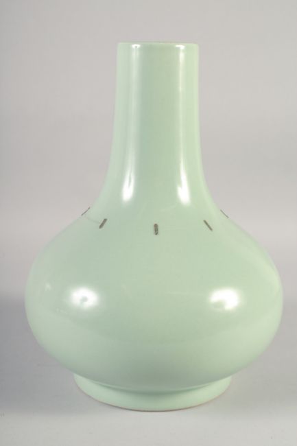 A LARGE CHINESE CELADON PORCELAIN VASE, six-character mark to base, (af), 33cm high.