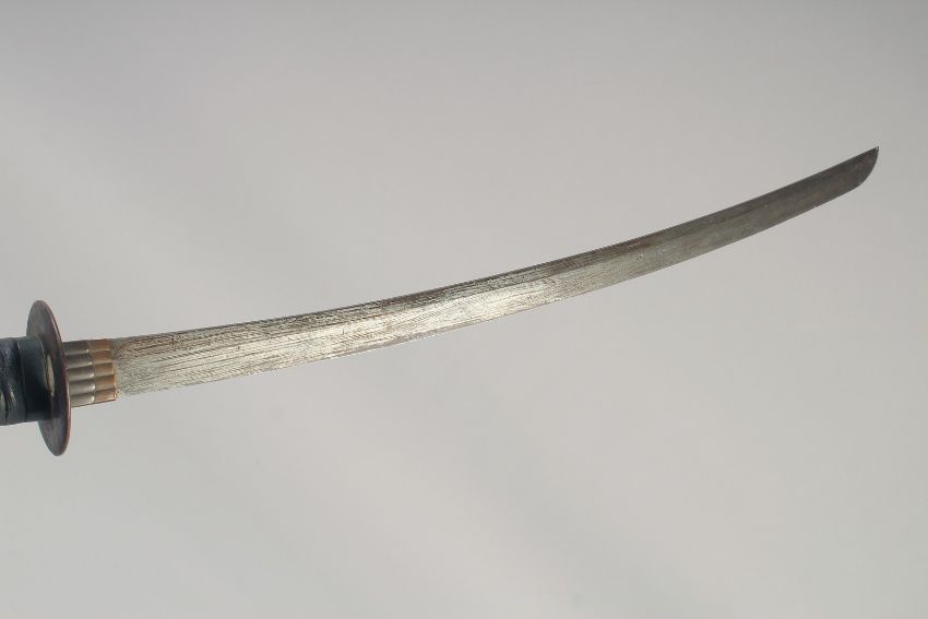 A LATE 19TH - EARLY 20TH CENTURYJAPANESE WAKIZASHI, with cord bound grip, pierced steel tsuba (lacking scabbard), overall length 75cm, blade 55cm.