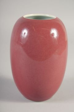 A CHINESE COPPER RED PORCELAIN POT, six-character mark to base, 15cm high.