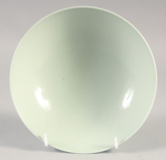A CHINESE BLUE AND WHITE PORCELAIN BOWL, decorated with figures, four-character mark to base, 19cm diameter.