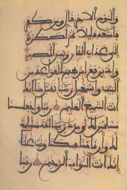 A LARGE NORTH AFRICAN QURAN, with later cover, 39cm x 28cm.