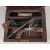 A FRENCH FLINTLOCK POCKET PISTOL, circa 1810, octagonal to round 50 bore 3.25 in barrel, lock signed 'Pegnet a Paris', swan neck cock, roller on frizzen, walnut full stock with silver wire inlay, bone tipped ramrod, in a later case containing a combination turnscrew & flint napping tool & a flat horn powder flask.