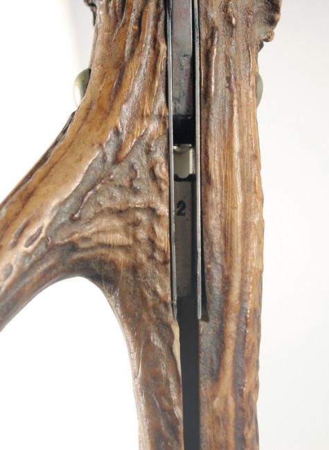 INDIANA INOX, A LARGE HUNTING KNIFE, the blade engraved with two deer and a dog, blade 12" with a large antler handle, 22" long.