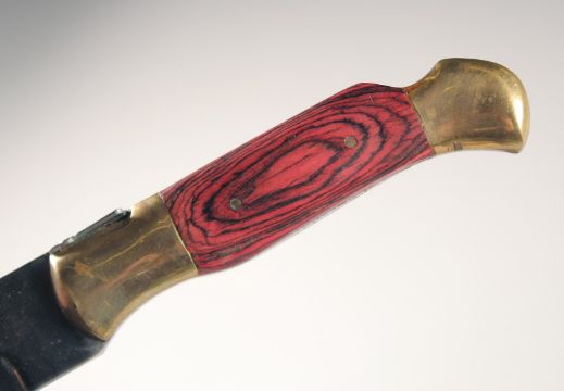 LAGUIOLE, a knife with wooden handle, in a leather sheath, 9.5" long.