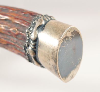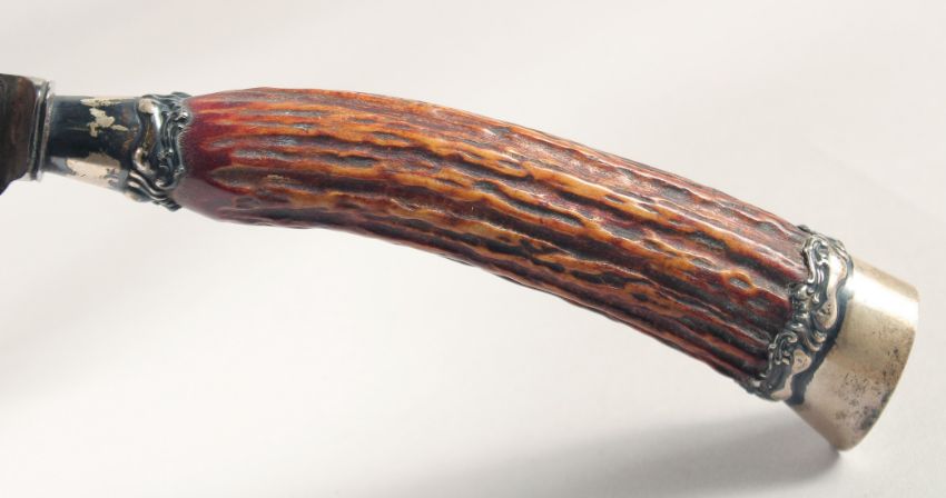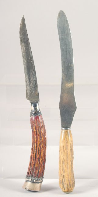 TWO KNIVES, with antler handles, (2).
