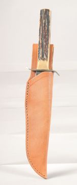WIDDER SOLINGEN GERMANY ORIGINAL BOWIE KNIFE, with antler handle in a leather sheath, 11" long.