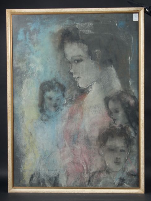 20th Century Continental School, a mixed media composition featuring four head studies, 29.5" x 21.5" (75 x 54.5cm).