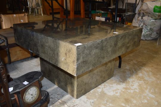 A modern square shaped coffee table.