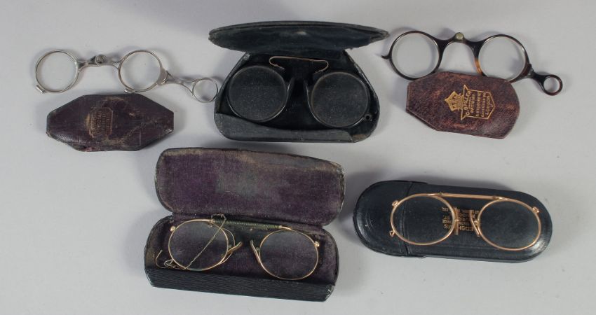 FIVE VARIOUS SPECTACLES in leather cases.