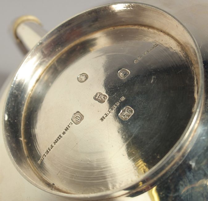 A GOOD PLAIN SILVER VICTORIAN CIRCULAR TEA POT AND COVER.