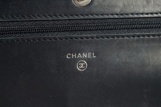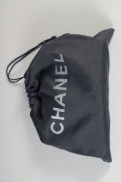 A SMALL CHANEL BLACK LEATHER BAG 18cm long, 12cm wide with long chrome and leather straps, 60cm long, complete with certificate no. 1917201.