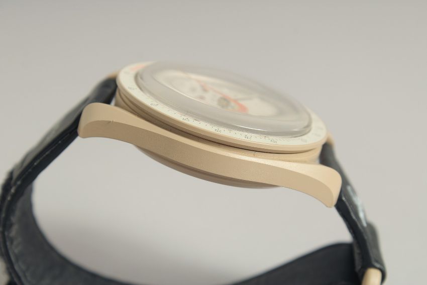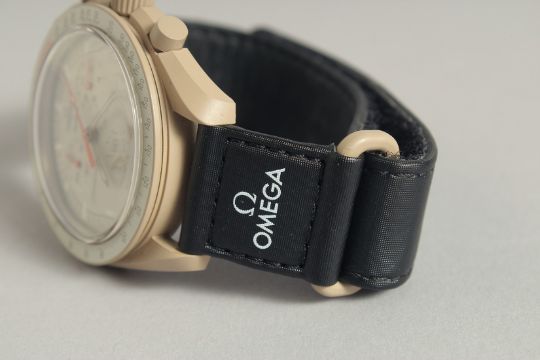 A GOOD OMEGA SWATCH SPEEDMASTER WRIST WATCH MOON WATCH.