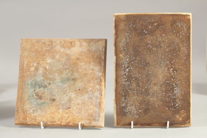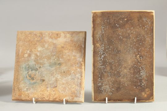 TWO ISLAMIC OTTOMAN GLAZED POTTERY TILES, 16.5cm x 24cm and 19.5cm square, (2).