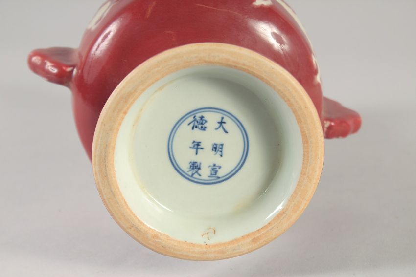 A CHINESE COPPER RED PORCELAIN VASE, six-character mark to base, 27.5cm high.