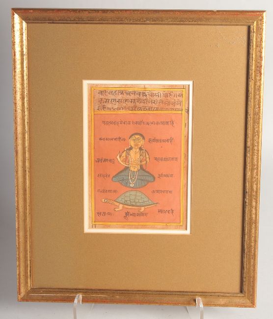 A 19TH CENTURY INDIAN ODISHA PAINTING OF A TANTRIC DEVI, with Devanagari inscriptions, framed and glazed, image 19.5cm x 13cm.