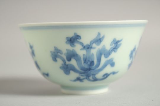 A CHINESE BLUE AND WHITE PORCELAIN CUP, six-character mark to base, 7.5cm diameter.