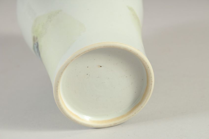 A 19TH CENTURY CHINESE FAMILLE ROSE PORCELAIN MEIPING VASE, painted with seated figures and bats, 23cm high.