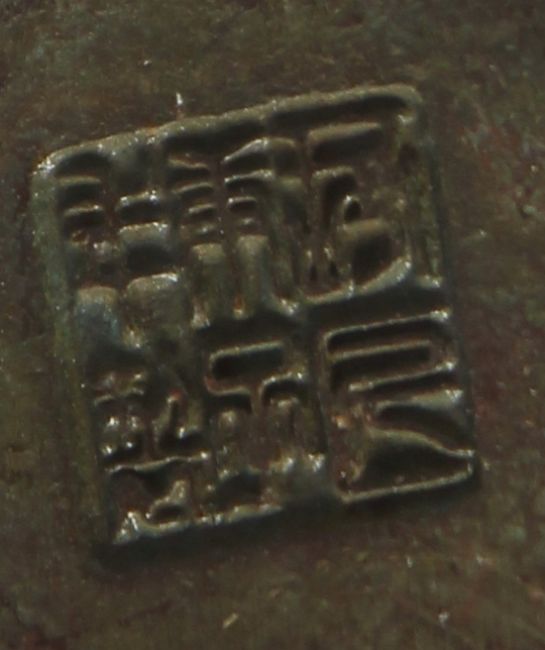 A JAPANESE BRONZE OKIMONO of a mythical beast, with six-character mark to base, 8.5cm long.