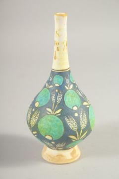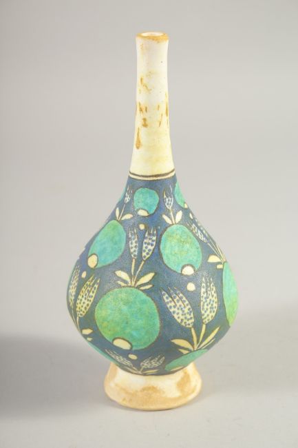 AN OTTOMAN KUTAHYA POTTERY ROSEWATER SPRINKER, 18.5cm high.