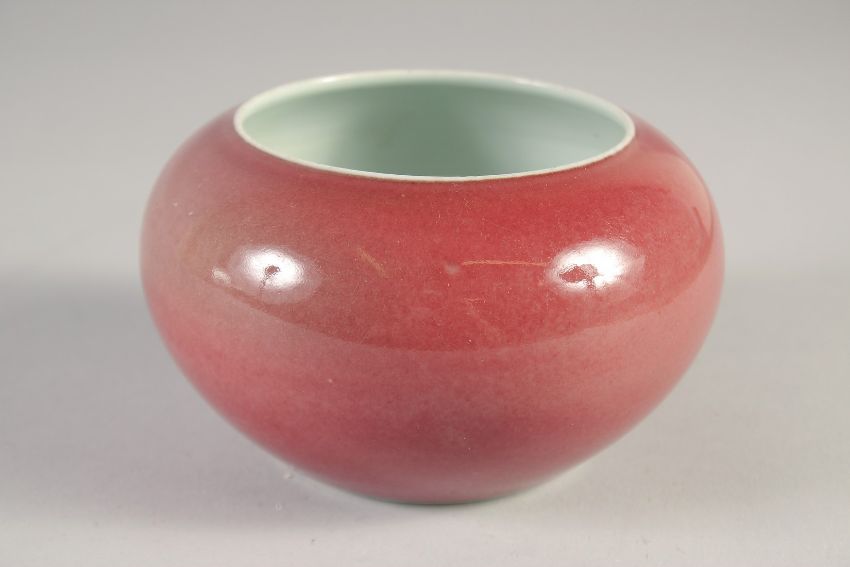 A CHINESE COPPER RED PORCELAIN BRUSH WASHER, 14cm diameter.