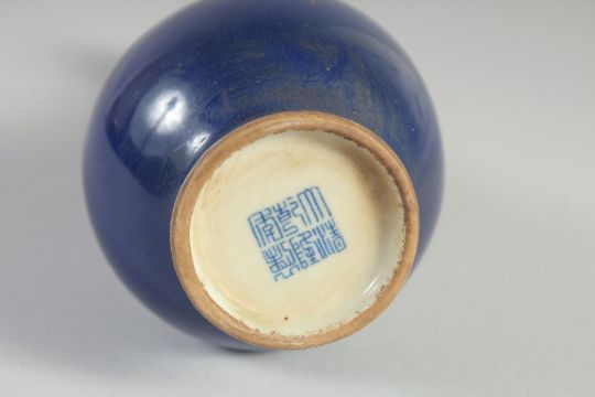 A SMALL BLUE CHINESE GARLIC NECK PORCELAIN VASE.