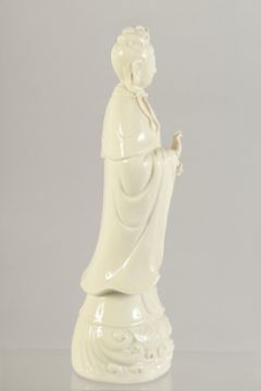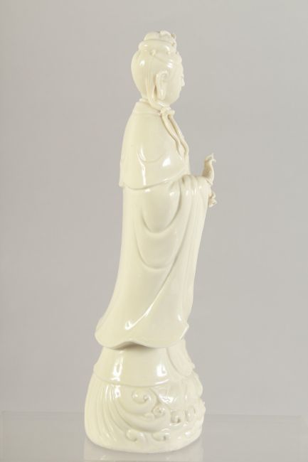 A BLANC DE CHINE PORCELAIN FIGURE OF GUANYIN, 25cm high.
