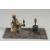 A COLD PAINTED BRONZE GROUP, the amulet vendor sitting on a rug. 7ins long.