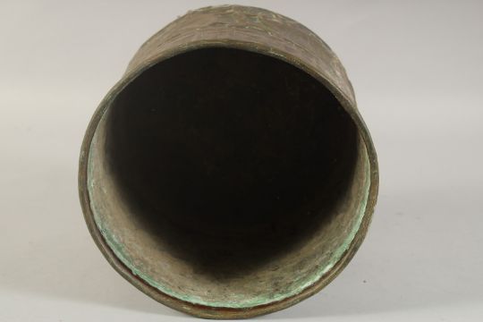 A JUDAICA ENGRAVED AND CHASED BRASS BOWL, 22cm diameter.