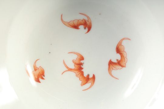 A CHINESE FAMILLE ROSE PORCELAIN BOWL, decorated with flora, the interior with five bats, four-character mark to base, 17cm diameter.