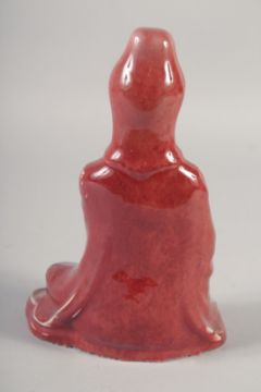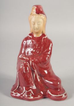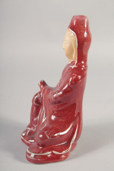 A CHINESE COPPER RED GLAZE PORCELAIN FIGURE, 21cm high.
