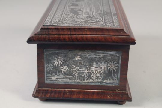 A SILVER PANELLED RECTANGULAR WOODEN BOX, 25cm long.