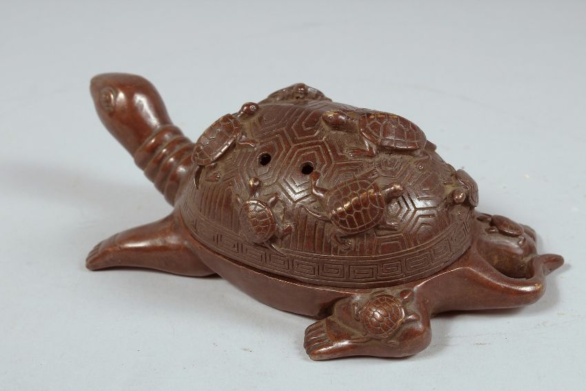 A CHINESE BRONZE TURTLE. 4cm diameter.