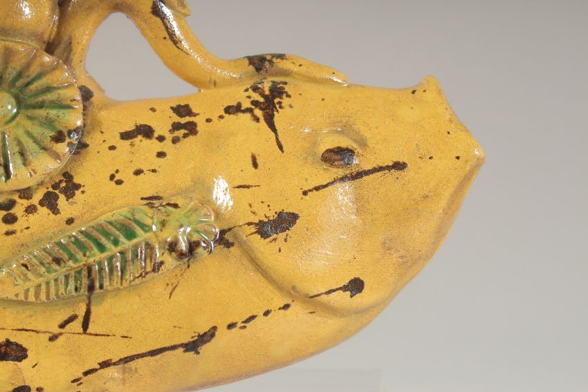 A CANAKKALE GLAZED POTTERY FIGURE OF A FISH, 25cm long.