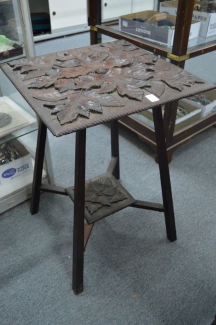 An unusual leaf carved oak coffee table.