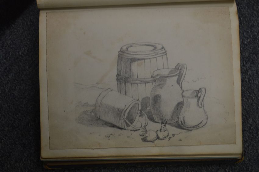 A good small Victorian scrap album containing various inserted scraps, drawings, watercolours etc.