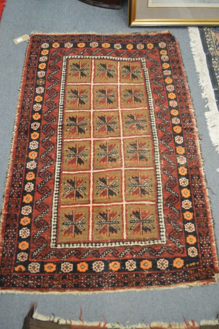 A Persian carpet, the central panel with three rows of six stylised motifs 150cm x 95cm.