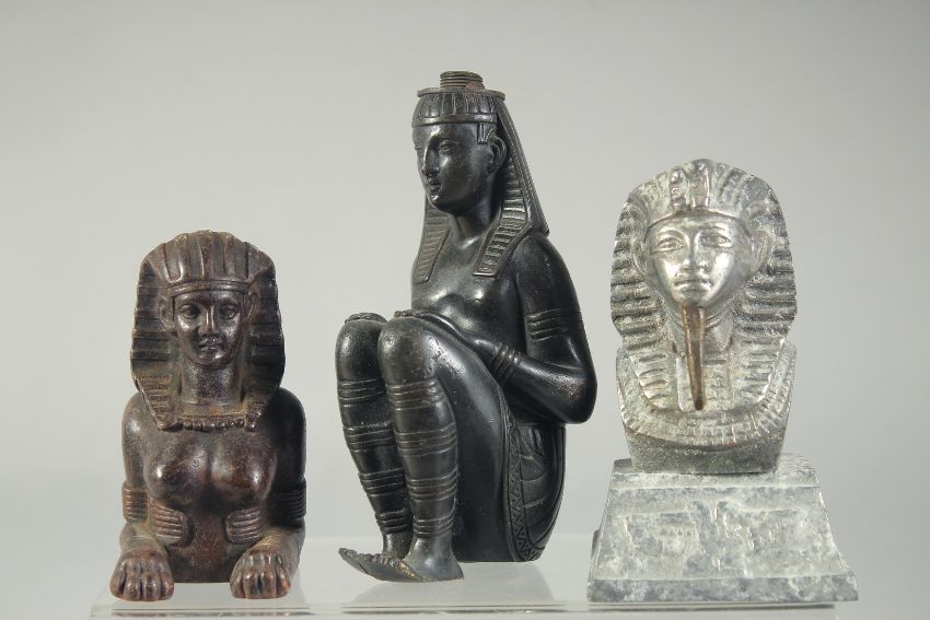 A COLLECTION OF FIVE EGYPTIAN BRONZE / METAL ITEMS, (5).
