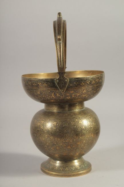 AN ENGRAVED BRASS SPITTOON, 29cm high.