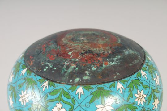 A RARE 19TH CENTURY CHINESE CLOISONNE ENAMELLED HUQQA BASE, for the Islamic Indian market, 15cm diameter.