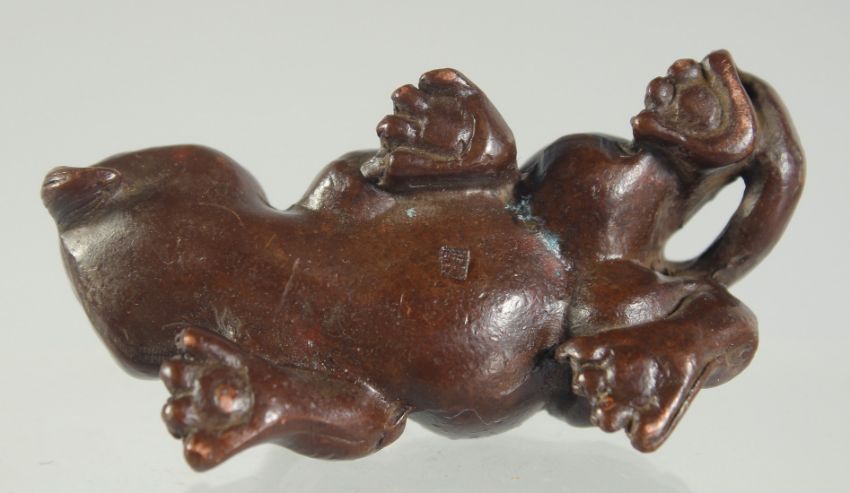 A JAPANESE BRONZE FIGURE OF MYTHICAL BEAST, 7cm long.