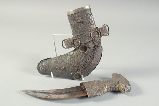 A MIDDLE EASTERN OMANI JAMBIYA AND SCABBARD, 30cm long.