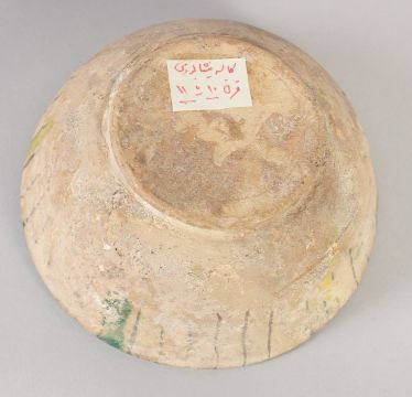 A FINE 9TH-10TH CENTURY PERSIAN NISHAPUR POTTERY BOWL, the interior painted with a bird, 15cm diameter.