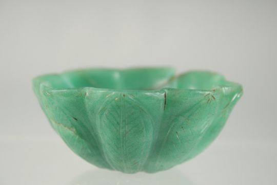 A SMALL 19TH CENTURY MUGHAL JADE / JADEITE BOWL, 7.5cm diameter.