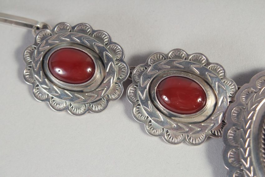 A GOOD STERLING SILVER NECKLACE set with four cabochon stones.