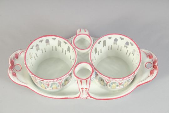 A 19TH CENTURY LUNEVILLE OIL AND VINEGAR DECANTER SET.