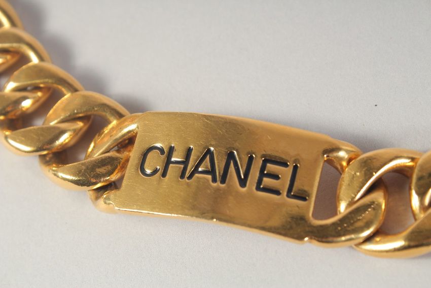 A HEAVY CHANEL GILT CHAIN BELT.