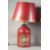 A PAIR OF RED TOLEWARE TINS as lamps with shades.