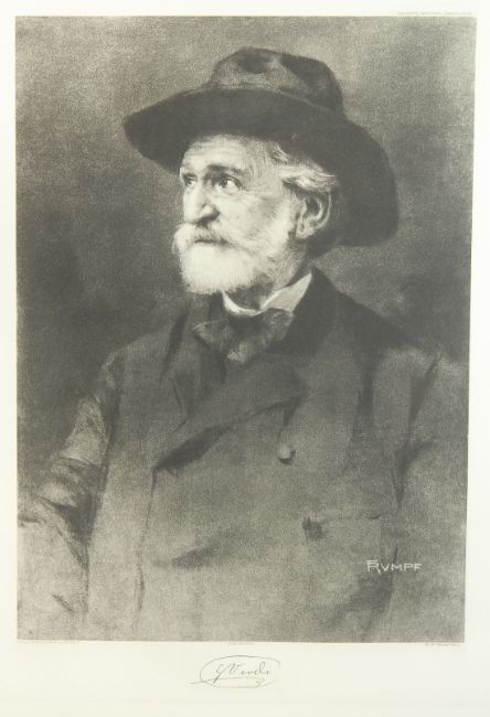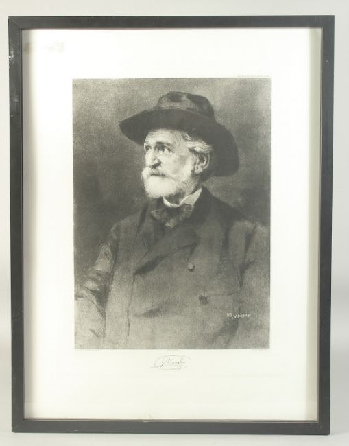 Rumpf, an engraving of Verdi, numbered 10, certificate verso, 20.5" x 14.5", (52x37cm).