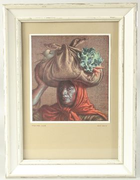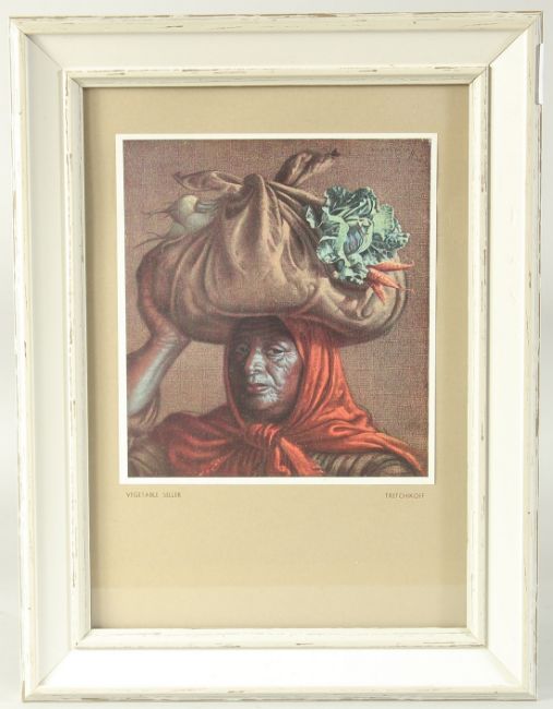 A print, Vladimir Tretchikoff, The vegetable seller, 7" x 6", (17.5x15.5cm).