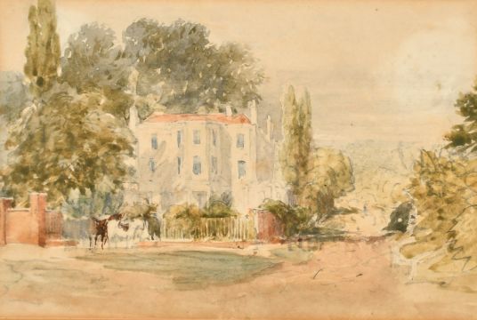 Attributed to David Cox, View of a country house, watercolour, 4.5" x 7", (12x18cm) (unframed).